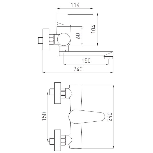 • ekscentri za montažu na dovod tople i hladne vode (G½ razmak između tople i hladne vode 150 ± 20 mm)