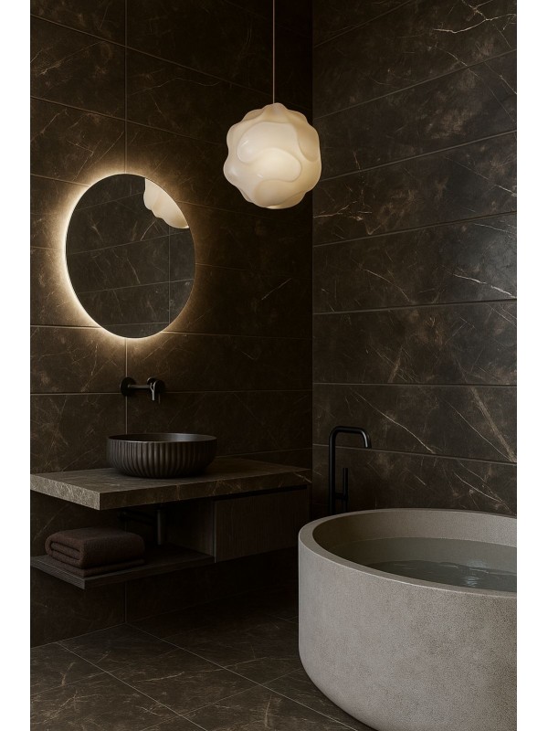 Pločica tamno braon boje sa diskretnim bež žilicama koje podsećaju na prirodni kamen. Unosi toplinu i sofisticiran izgled u kupatila, kuhnje i akcentne zidove.