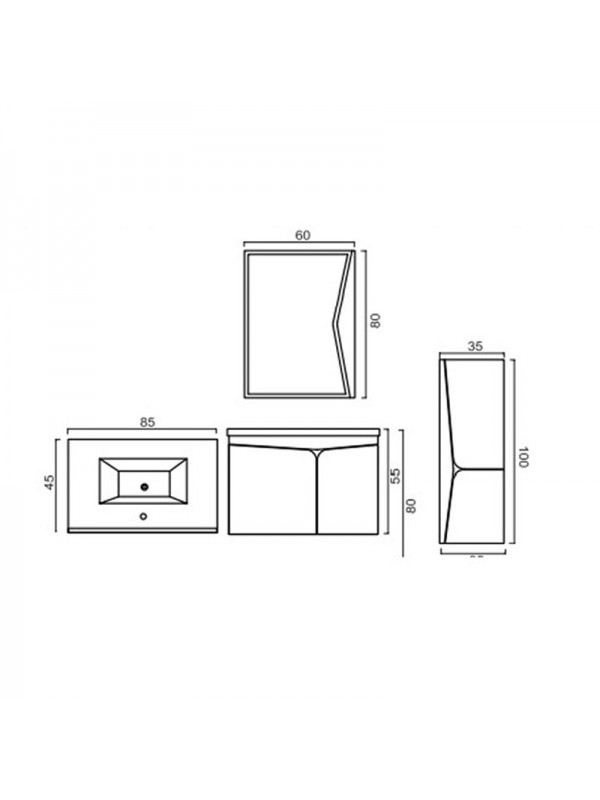 DENKOKontesa EREL 85 MDF donji deo - konzolna - Belo 84053Konzolni ormarić izrađen od medijapana, dolazi u kompletu sa umivaonikom...