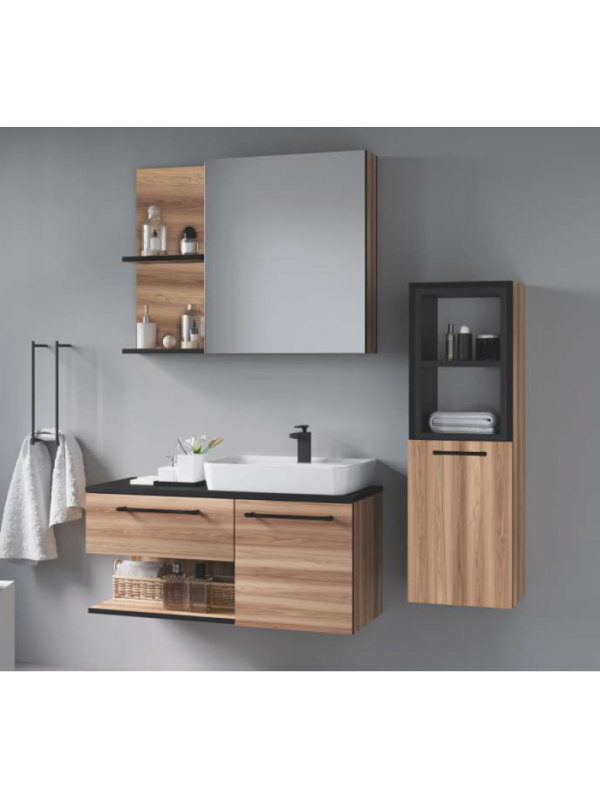 DENKOKontesa PIRAMIT 90 MDF donji deo - konzolna - Hazar/Crno 84130Konzolni ormarić od medijapana, dolazi u kompletu sa umivaonikom
