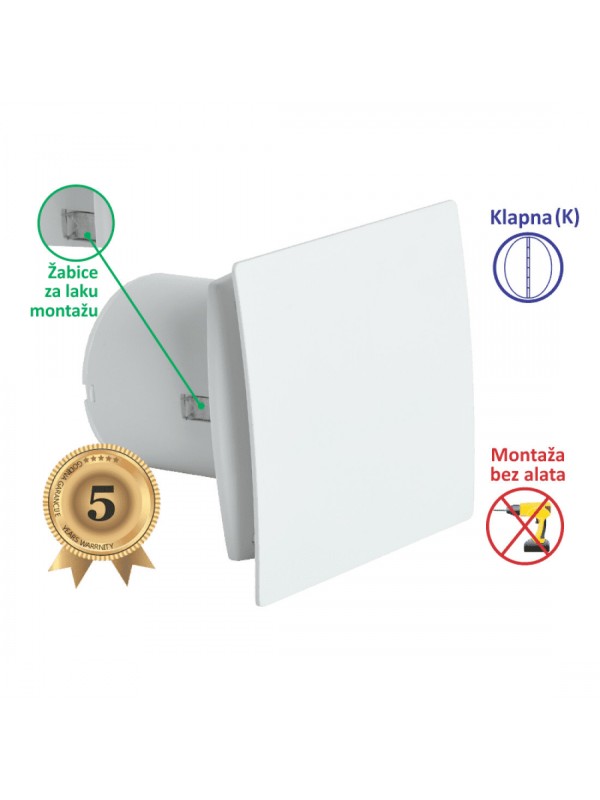 Kupatilski ventilatori se koriste za ventilaciju u stambenim i poslovnim prostorijama. Sprečavaju vlagu i neprKupatilski ventilatori se koriste za ventilaciju u stambenim i poslovnim prostorijama. Sprečavaju vlagu i neprijatne mirise. Lako se montiraju na otvor zida ili na plafon zatezanjem žabica instaliranih u telu ventilatora. Ventilator za kupatilo silent ima bešumni elektro motor. Termička zaštita sprečava pregrevanje motora. MTG ventilatori su lagani, tihog rada i kvalitetne izrade. Ventilator za kupatilo silent ima bešumni elektro motor. Ventilator za kupatilo fi 100 se montira na aspiratorsko crevo prečnika 100mm.
