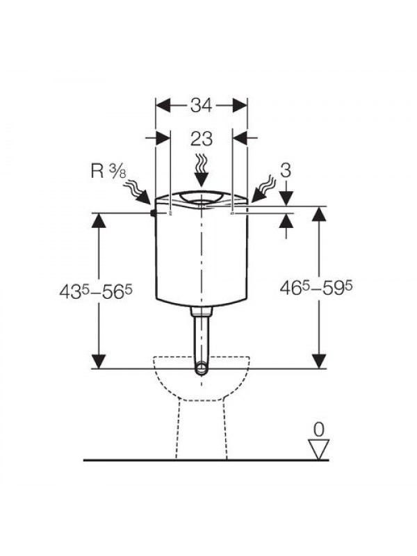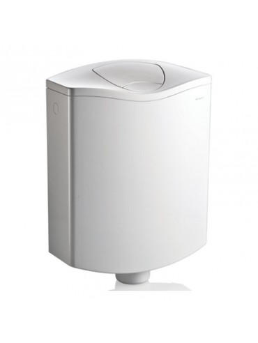 Geberit AP 116 vodokotlić niske montaže bele boje Tehničke karakteristike: 6-litarski predzidni vodokotlić proizveden od ABS plastike dvokoličinska tehnika ispiranja podesiva količina vode 2,5-4 i 4,5-7,5 litara priključak vode sa 3 strane -sa priloženom izlivnom cevi i šablonom za montažu.