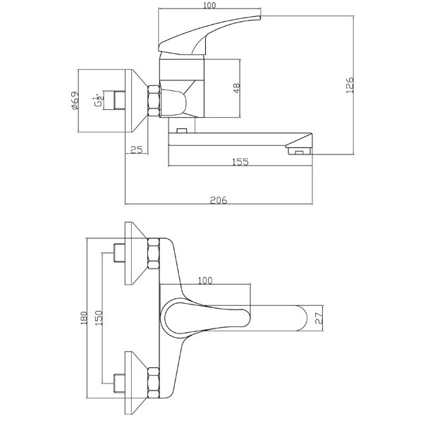• ekscentri za montažu na dovod tople i hladne vode (G½ razmak između tople i hladne vode 150 ± 20 mm)
