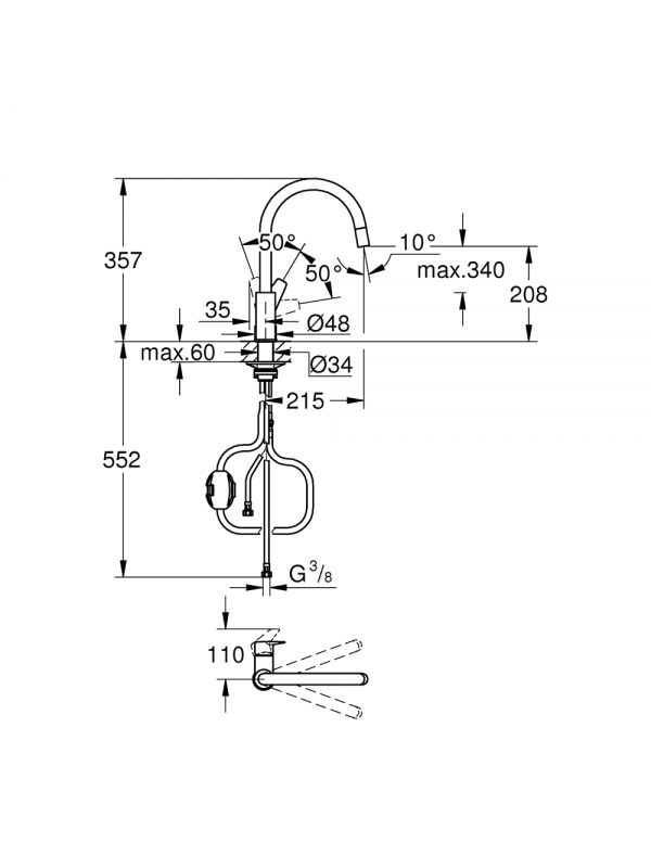 Izvlačni tuš omogućava veću fleksibilnost pri pranju posuđa ili povrća/voća, a visoki izliv je idealan za dvodelne sudopere, kao i lakše punjenje velikih posuda.