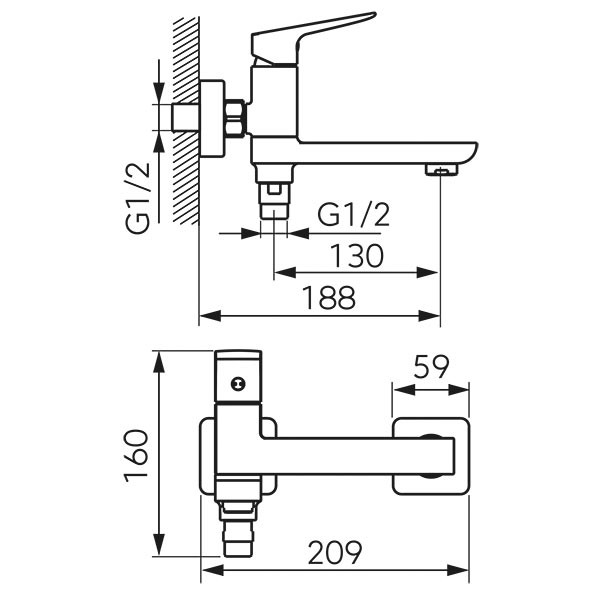 • ekscentri za postavljanje (G½ razmak između tople i hladne vode 150 ± 20 mm)